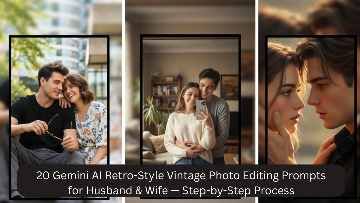 This detailed guide shares 20 copy-paste Gemini AI retro-style photo editing prompts for husband and wife, along with a clear step-by-step process to help beginners get perfect results. The content is written cleanly and professionally, making it suitable for AdSense-friendly websites.